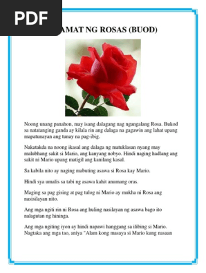 Nilikha tayo ng Diyos ng may ibat-ibang katangian kaya maging kuntento tayo at iwasang ikumpara ang sarili sa iba. Max Bueno lasalian filipino teacher in De La Salle Lipa Integrated SchoolAlamat ng SagingAlamat ng LansonesAlamat ng SampaguitaAlamat ng RosasAlamat ng MakopaAlamat ng IpisAlamat ng PinyaAlamat ng SapatosAlamat ng Chocolate HillsAlamat ng. Maraming mga alamat ng rosas ngunit iisa ang pangunahing paksa.
