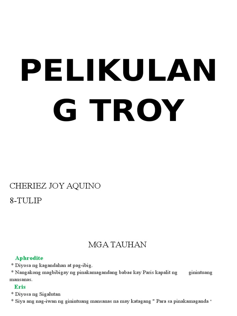 Hanggang sa kinalaunan nagkaroon ng 2. Ang Digmaang Troya Trojan War ay isa sa pinakadakilang mga digmaan sa kasaysayan ng Sinaunang Gresya. Ika-4 na grupo Eris Diyosa ng Sigalutan Siya ang nag-iwan ng ginintuang mansanas na may katagang.