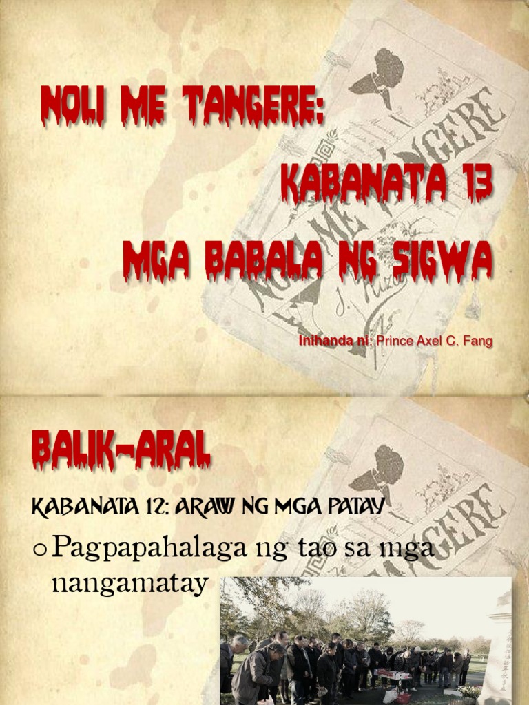 Tauhan ng kabanata 13 noli. KABANATA 9- MGA SULIRANIN TUNGKOL SA BAYAN. Ang pagtitipon ay para sa pagbabalik sa Pilipinas ni Crisostomo Ibarra. Kabanata 12 Araw ng mga Patay Talasalitaan Tagpuan at Tauhan Ang sementeryo ng San Diego ay nasa kalagitnaan ng isang malawak na palayan at may bakod na lumang pader at kawayan.