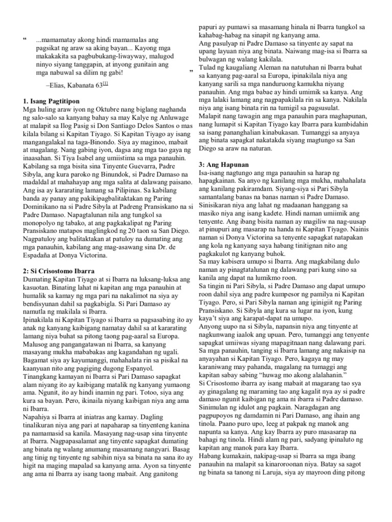 Noli Me Tangere Buod 2021 Ang Pagpupulong at Pagpapakilala Nagkaroon ng isang selebrasyon si Don Santiago Delos Santos o mas kilala siya bilang si. Ang pagtitipon ay para sa pagbabalik sa Pilipinas ni Crisostomo Ibarra. Sa isang maliit na dampa sa labas ng bayan ay abalang abala si Sisa ang butihing ina nila Crispin at Basilio.