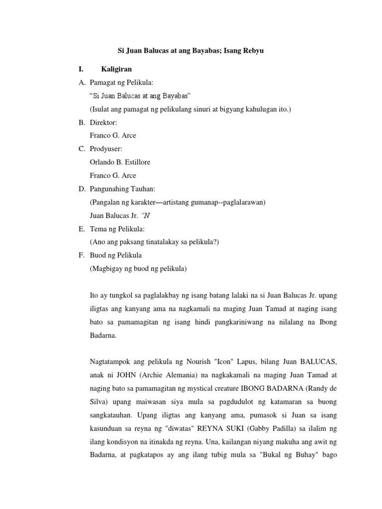 Si Juan Balucas At Ang Bayabas Rebyu Pdf